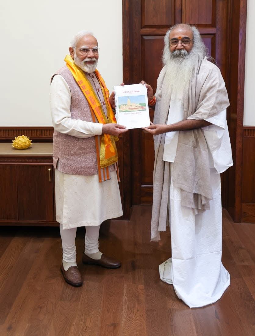 भारतीय “संसद” के प्रधानमंत्री कक्ष में आज, भारत के यशस्वी प्रधान मन्त्री आदरणीय नरेंद्र मोदी जी को श्री कल्कि धाम के निर्माण की प्रगति रिपोर्ट और विश्व की प्रथम “कल्कि कथा” के प्रसाद एवं श्री कल्कि धाम का अंग-वस्त्रम भेंट करने का “सौभाग्य” प्राप्त हुआ.
