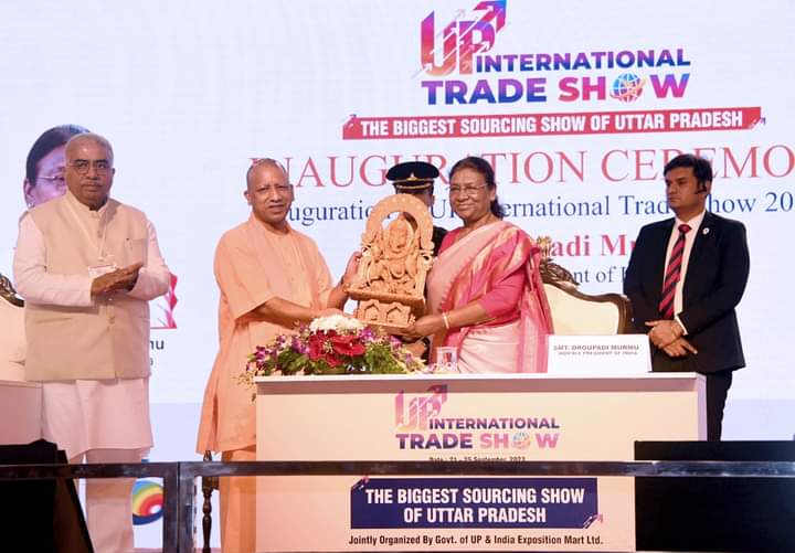 माननीया राष्ट्रपति द्रोपति मुर्मू ने ग्रेटेड नोएडा स्थित इंडिया एक्सपो सेंटर एंड मॉर्ड में उत्तर प्रदेश के पहले इंटरनेशनल ट्रेड शो का उद्घाटन किया इस मौके पर उत्तर प्रदेश के मुख्यमंत्री योगी आदित्यनाथ उपस्थित रहे